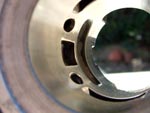Modifica travasi supplementari 50 corsa corta Dopo parecchie prove sono arrivato alla configurazione che si può vedere nella sequenza fotografica, cilindro lavorato e cilindro di serie, di una modifica ai travasi del cilindro 50 c.c. del Minarelli corsa corta alesaggio 40.30...